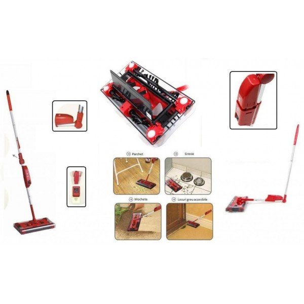 Nincsenek többé bosszantó kábelek, mostantól gyorsan, könnyen és hatékonyan takaríthat! A hatékony és tökéletes tisztítás titka a forgókefékben rejlik, amelyek a takarítófej 4 oldalán helyezkednek el. A rotációnak és az erős szívóerőnek köszönhetően a kefék a legnehezebben hozzáférhető helyekről és különféle felületekről is eltávolítják a piszkot, pl. szőnyegekről, csempéről, laminált padlóról, stb. Az elektromos seprű forgatható fejjel is rendelkezik, amely 360°-os mozgást tesz lehetővé.