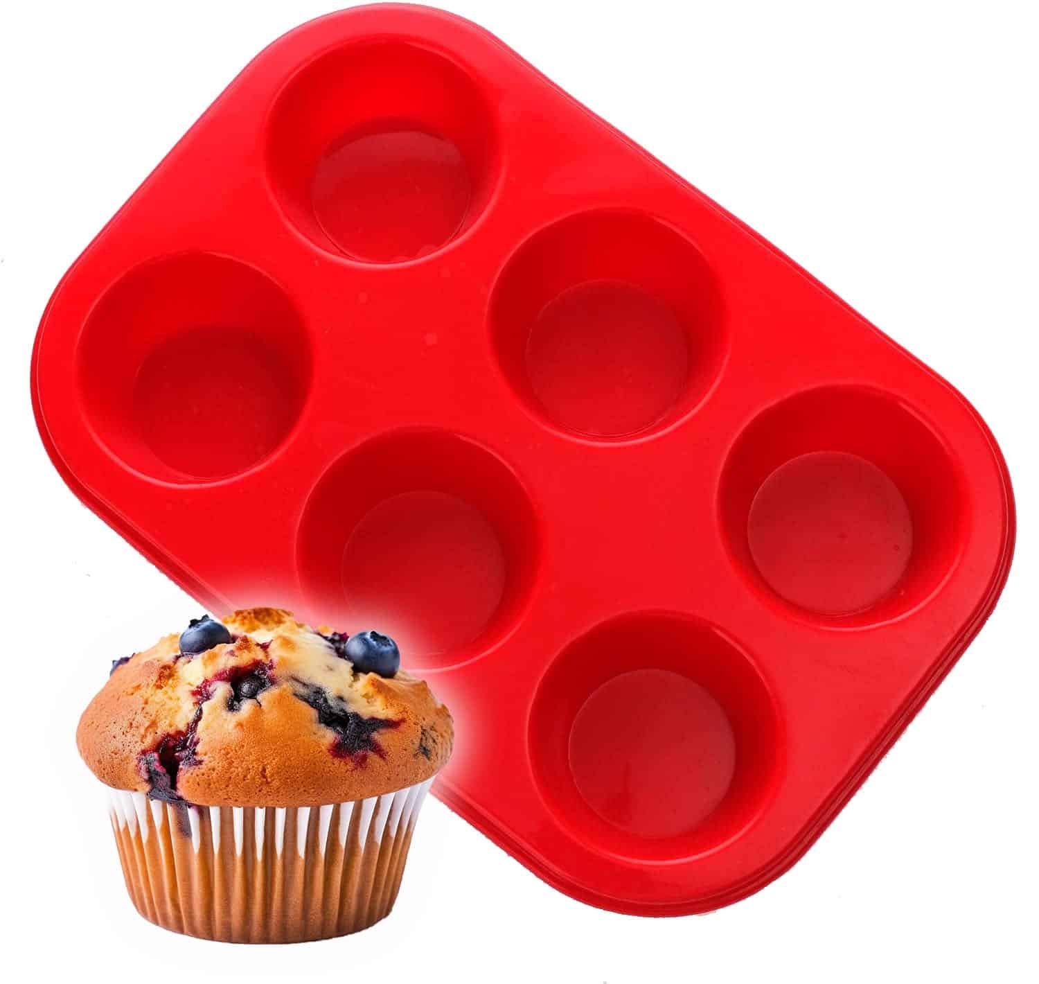 Professzionális muffin sütés : A szilikon muffin forma 6 csészével rendelkezik (mindegyik csésze mérete: 7×2,5 cm), tálca mérete: 26×18 cm. A 6 csészés muffin sütőhöz képest ez a szilikon forma stabilabb az étel megtöltése után. Muffinok, mini torták és még sok más sütéséhez tervezték.