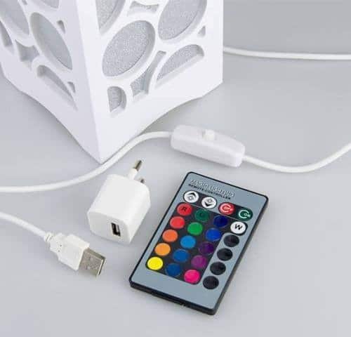Elragadóan hangulatos asztali LED lámpa, mely a hozzá tartozó távirányító segítségével kényelmesen vezérelhető, és színe valamint világítási módja személyre szabható.